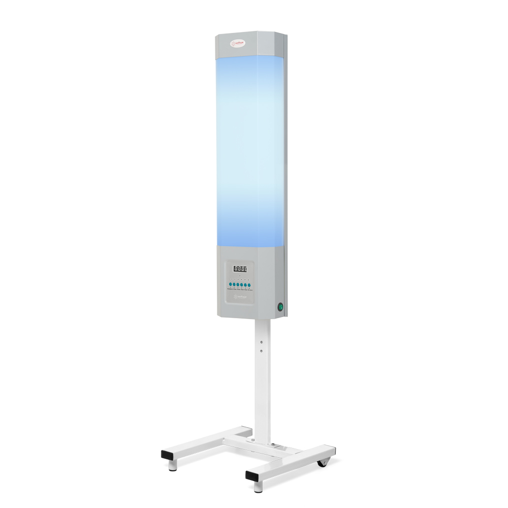 Современный лаконичный дизайн прибора позволяет использовать прибор в любом помещении. Металлический корпус и строгое оформление отлично впишутся как в домашние, так и в офисные пространства, привнеся нотку современного стиля. Передвижная стойка, заказываемая дополнительно, обеспечивает удобство перемещения оборудования. Также облучатель может фиксироваться на стене – в комплекте есть необходимые крепежи.