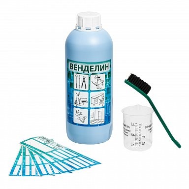 Форма выпуска: комплект (флакон 1 л; мерный стакан, 100 мл; многоразовая щётка для очистки инструментов; наклейки для контейнера с дезинфицирующим раствором)