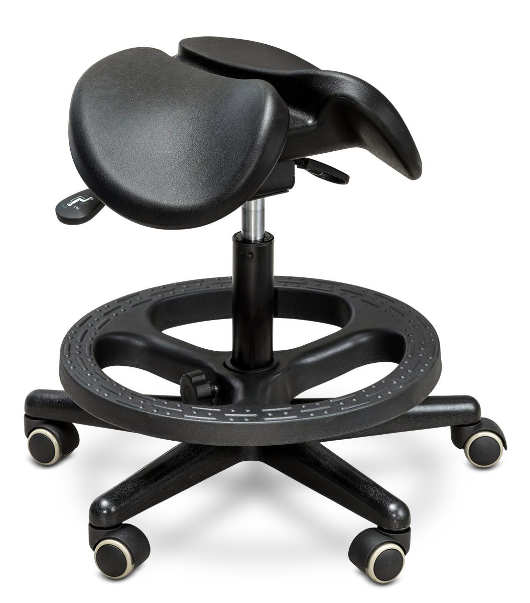 Стул-седло сбережёт вашу спину от высокой нагрузки и не даст затрудняться кровотоку при долгом сидении. Для большего удобства вы можете изменять настройки ширины частей сиденья. Также оно может наклоняться, тем самым сохраняя вашу осанку в полном порядке при наклонах вперёд.