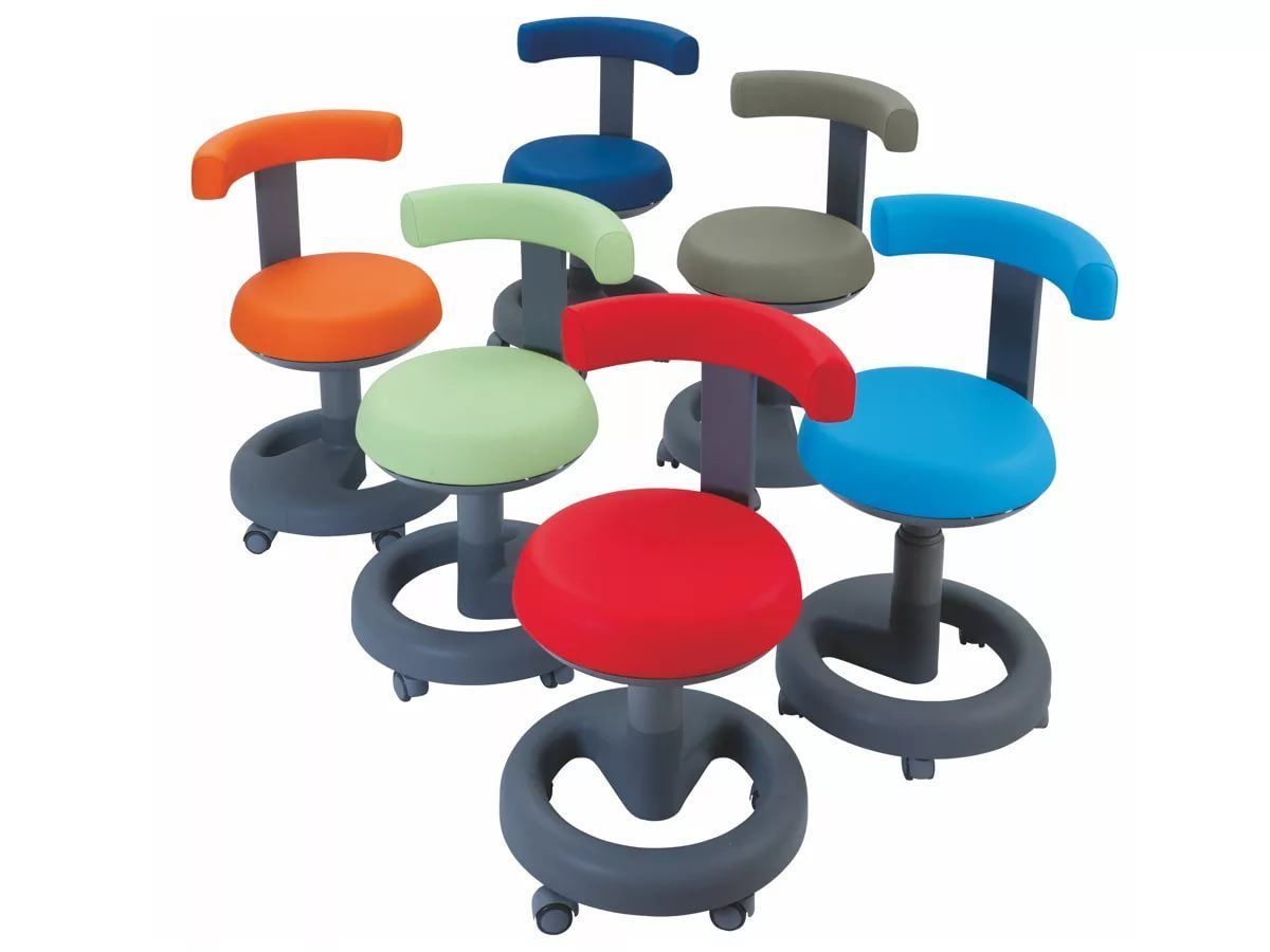Спинка стула полукруглой формы с абдоминальным упором. Вращается на 360 градусов относительно сидения, имеет возможность крепления в трех фиксированных положениях.