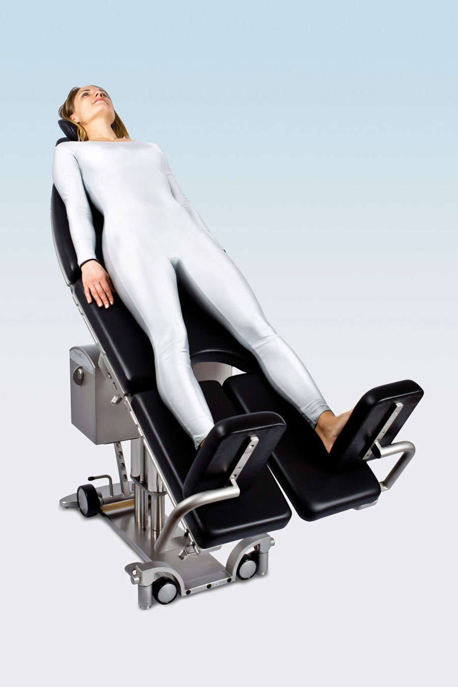 При операциях, для которых требуется, чтобы пациент находился в положении стоя (положение анти-Тренделенбурга) возникает необходимость в использовании этого упора. Упор монтируется при вертикальном положении стола и надежно предотвращает соскальзывание тела.