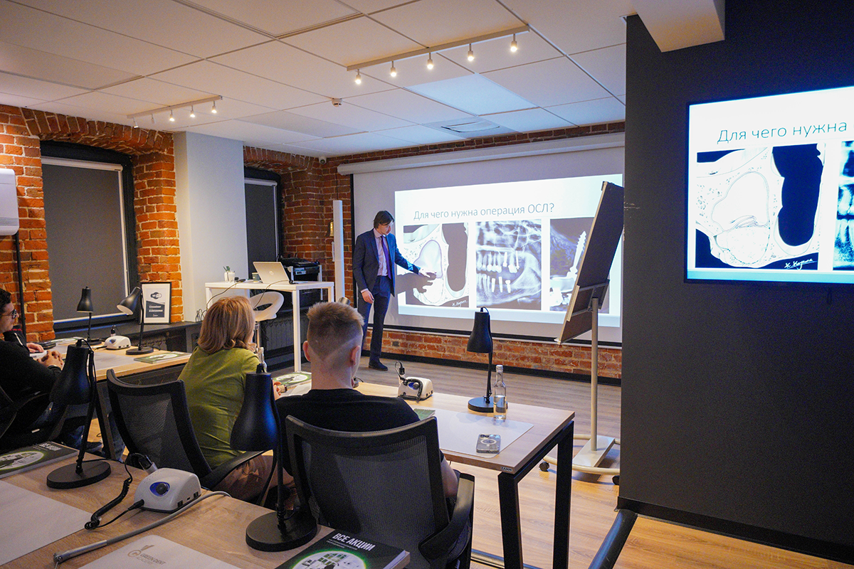 Этому на своём курсе учит Роман Юркевич. Все участники, познакомившись с этой процедурой по наращиванию костной ткани и, отработав полученные навыки на практике, убедились в эффективности этого вида операций по костной пластики и, конечно же, полюбили его.