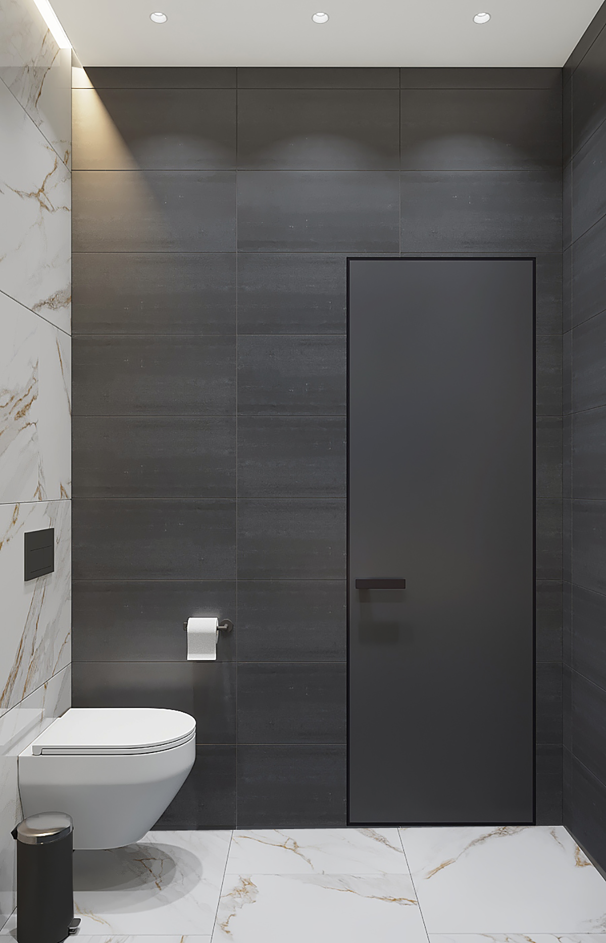 85 квадратных метров, на стенах керамогранит в сочетании с керамической плиткой, светлое просторное пространство, требующее акцентов.