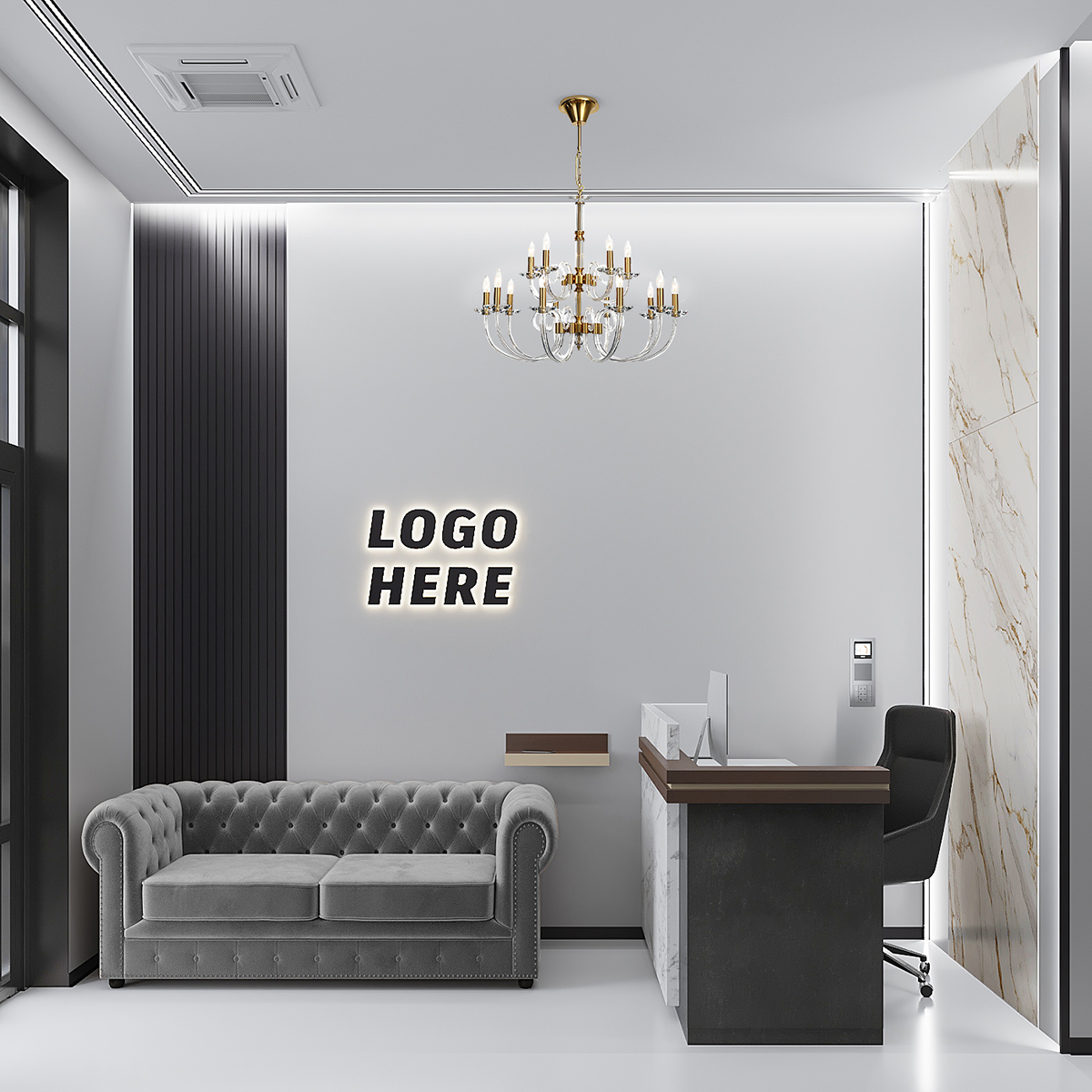- Логотип клиники с подсветкой